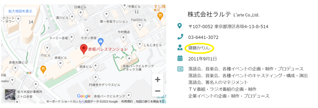 雀々さんは、マネジメント契約している事務所にも所属し2つの事務所に関わっていますが、今回のお相手は、株式会社ラルテの社長の齋藤かりんさんです。